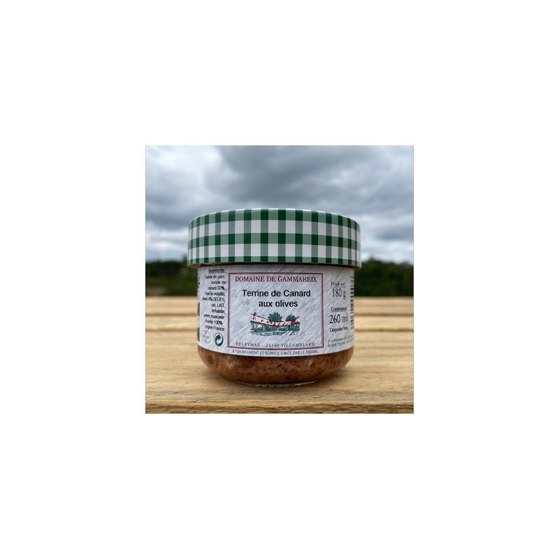 Liste des ingrédients : Viande de porc, viande de canard 30 %, foie de volaille, œufs, olives 4 %, lait, sel, échalote, poivre, muscade. Garanti 100 % viande française.