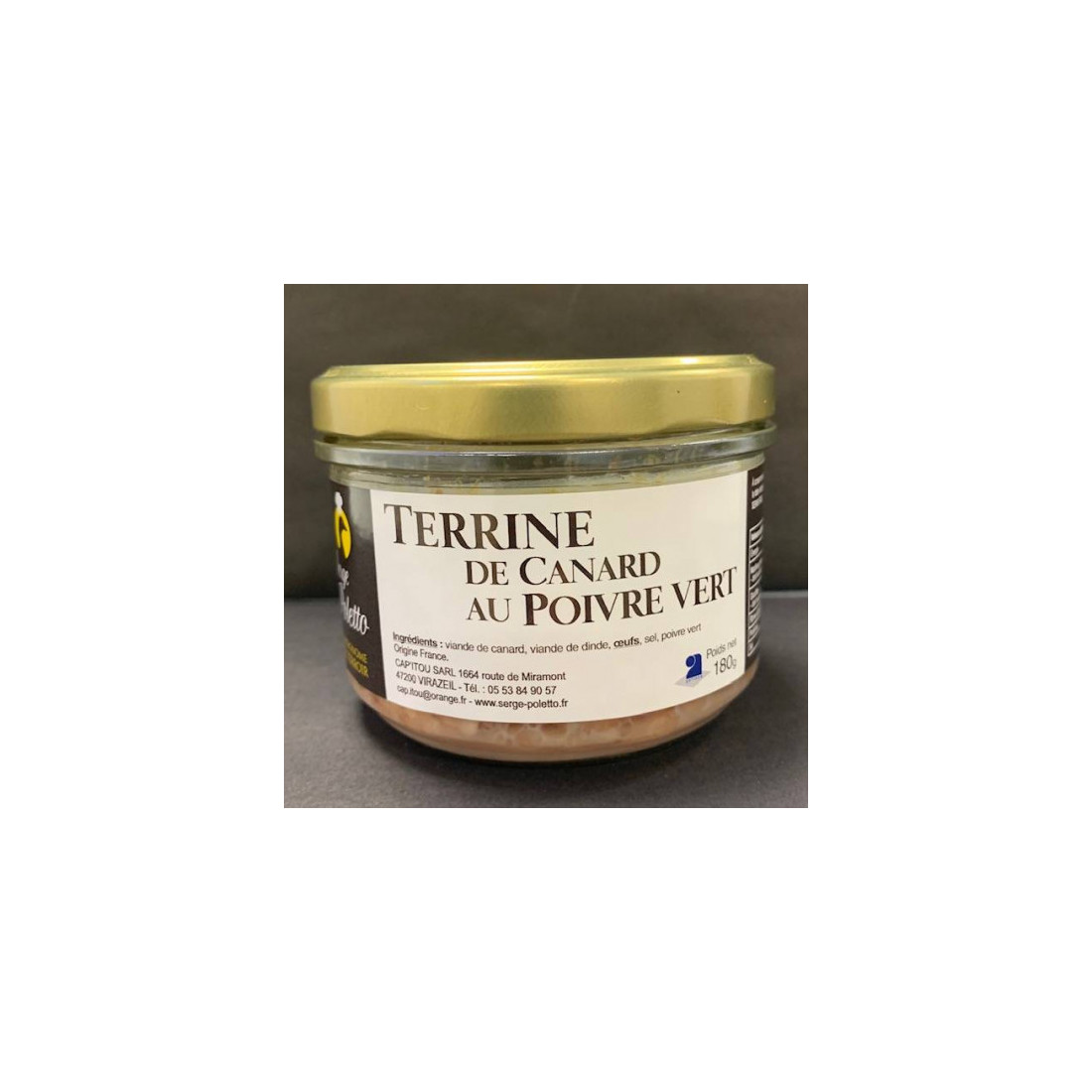 Nos terrines de canard au Poivre Vert sont élaborées avec des manchons de canard et des cuisses de dinde. Le poivre vert en grain ajoute une saveur épicée et délicatement relevée, ce qui en fait une terrine délicieuse et parfumée. Fabrication artisanale, avec de la viande de canard fraiche origine Sud-ouest. Viande Française.