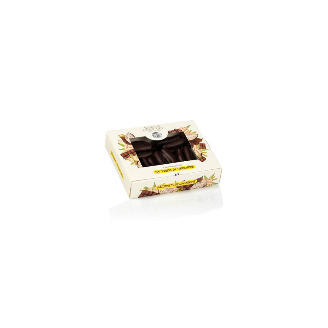 Liste des ingrédients : Gingembre 55,6%, sucre, masse de cacao, beurre de cacao, arôme naturel de vanille, émulsifiant : lécithine de SOJA, conservateur: E220.