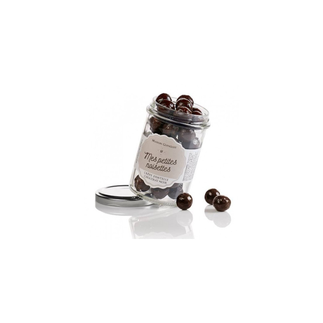 Liste des ingrédients : NOISETTES 29,8%, sucre, masse de cacao, beurre de cacao, farine de BLE, poudre de LAIT entier, LAIT écrémé en poudre, caramel en poudre, protéine de LAIT, BEURRE, arôme naturel de vanille, malt d'ORGE, sel, agent d'enrobage: sirop de glucose, amidon, g...